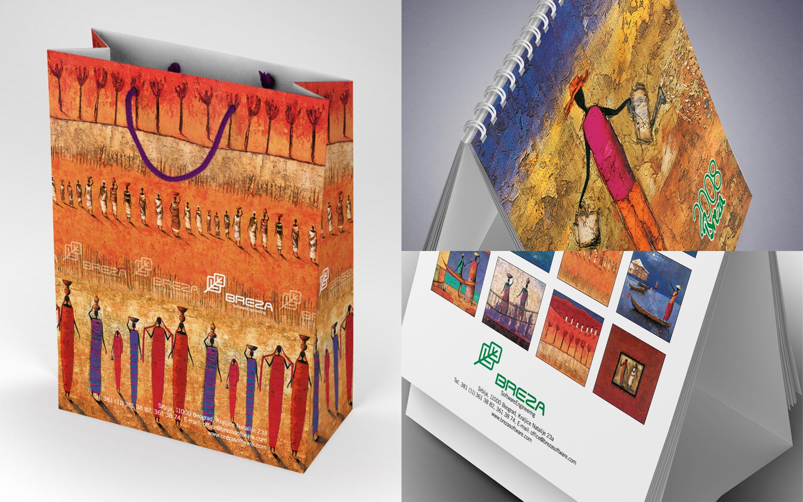 Logo, branding, brochures, advertising, paper bags.